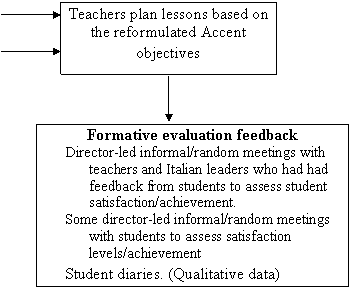 These reformulated objectives were discussed in detail with Accent teachers before they started teaching and regularly during the course. The evaluation therefore led to a reformulation/clarification of the initial objectives.