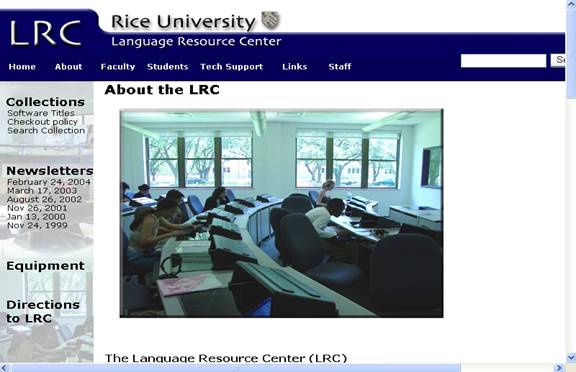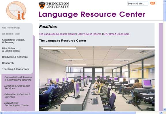 Examples of this second type of lab design are presented on The Teaching Lab (Plate 2b) and The ALTEC Computer Classroom at Colorado University, The LRC Smart Classroom at Princeton University or The Language Resource Center at Rice University.
