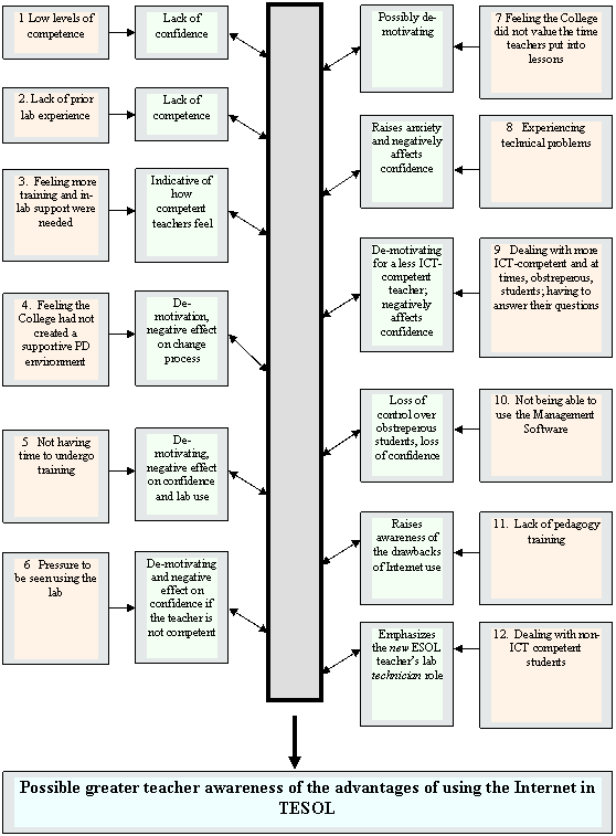 Figure 5 The central relevance of training and support orientated towards ESOL-Internet pedagogical development
